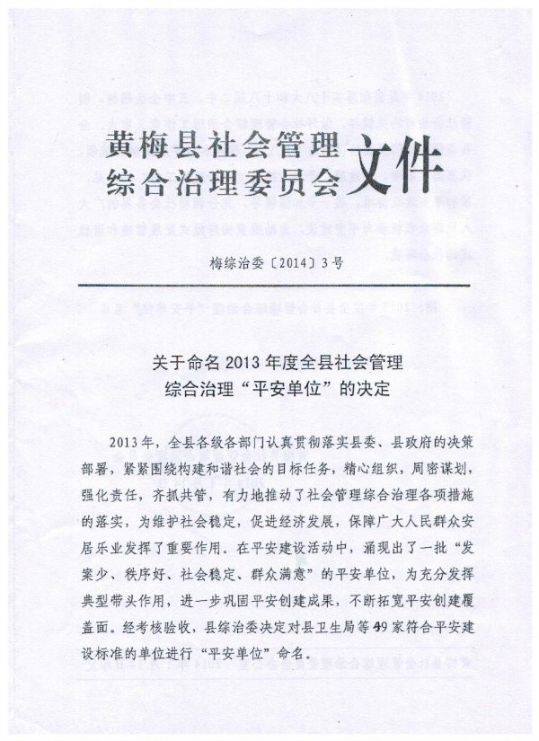 365足球被命名为2013年度全县社会管理综合治理“平安单位”